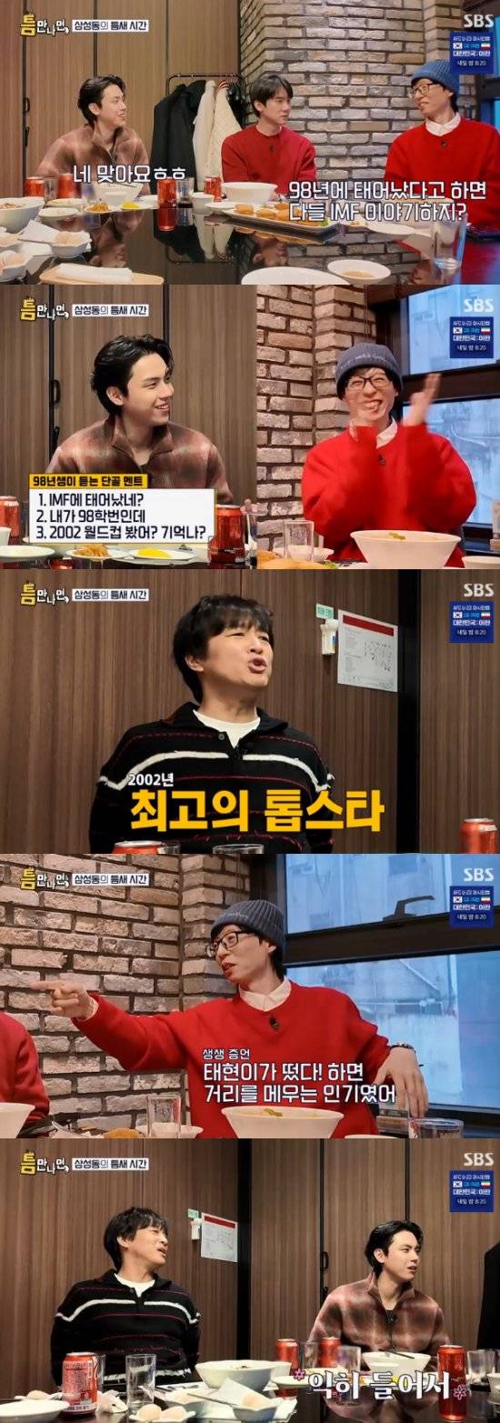 '틈만 나면'에서 유재석이 차태현의 전성기 시절 인기를 떠올렸다.