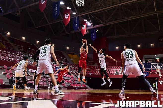 6일 경희대 국제캠퍼스 선승관에서는 2025-2026 KBL D리그 상무와 수원 KT, 원주 DB와 안양 정관장의 맞대결까지 총 2경기가 열렸다.