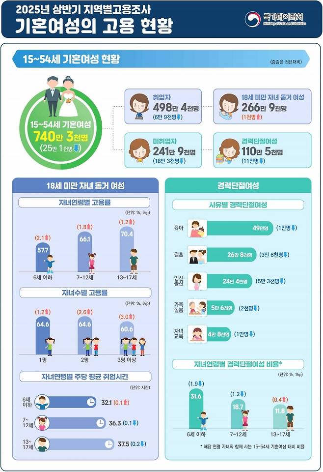 | ▲ 2025년 상반기 지역별고용조사 기혼여성의 고용 현황 |