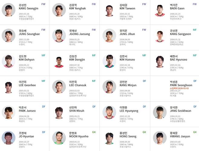 2026 AFC 아시안컵에 나설 남자 축구 대표팀 아시안컵 참가 명단이 23명으로 정리됐다. 포지션별로는 골키퍼 3명, 수비수 9명, 미드필더 5명, 공격수 6명 구성이다.