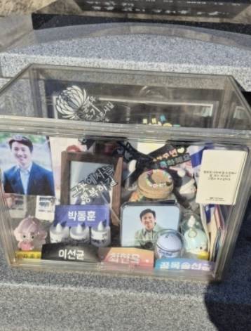 이선균의 묘소에는 지금도 그를 기억하는 팬들과 지인들의 발걸음이 이어지고 있었다. 꽃과 편지, 작은 선물들 사이에서 시간이 흘러도 지워지지 않은 그리움이 고스란히 전해졌다.