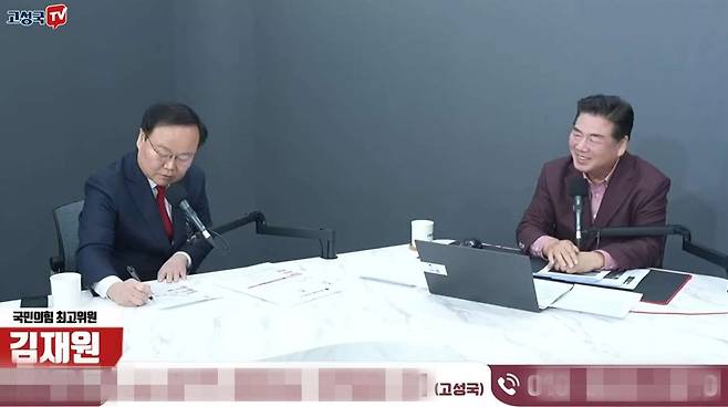 | ▲ 지난 5일 고성국TV 방송에 출연한 김재원 국민의힘 최고위원은 고씨의 입당 원서 추천인에 자신의 이름을 기재했다. |