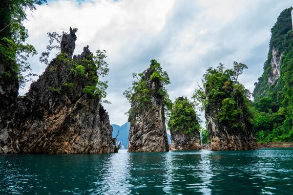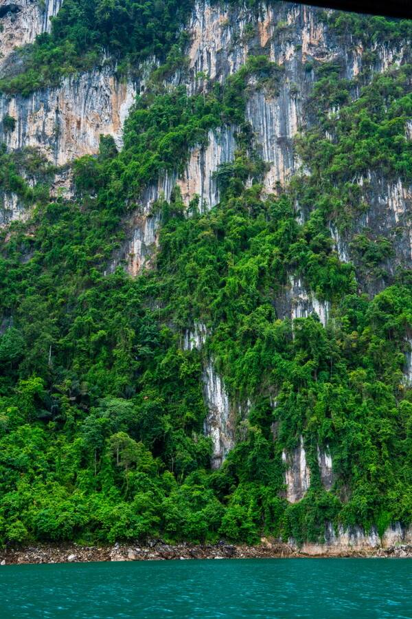 수면 아래는 다양한 민물고기가 살고, 300종 이상의 조류가 물속에서 먹이를 건진다. 더군다나 보트가 가는 물길 양옆으로는 태국 남부에서 가장 규모가 크고, 아마존 열대우림보다 더 오래됐다고 알려진 밀림과 석회암 카르스트 지형의 바위산이 100개 이상 자리 잡고 있다.