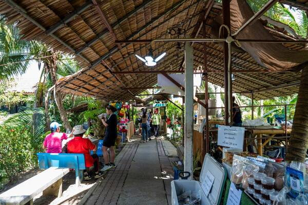 시장 구경 전후로는 마켓 바로 앞에 위치한 운하 위를 유유히 여행할 수 있는 니파 야자 터널 롱테일 보트 체험도 하기 좋다. 니파 야자는 강과 하천 유역의 맹그로브 숲에서 자라는 야자나무로, 이곳에서는 운하 양옆에서 니파 야자가 뻗어져 나와 터널을 이룬 듯한 광경을 만날 수 있다. 롱테일보트 체험은 왕복 7~10분 소요된다. 보트 체험을 하고 싶다면 시장 앞 강가에서 뱃사공을 찾아 문의하면 된다.