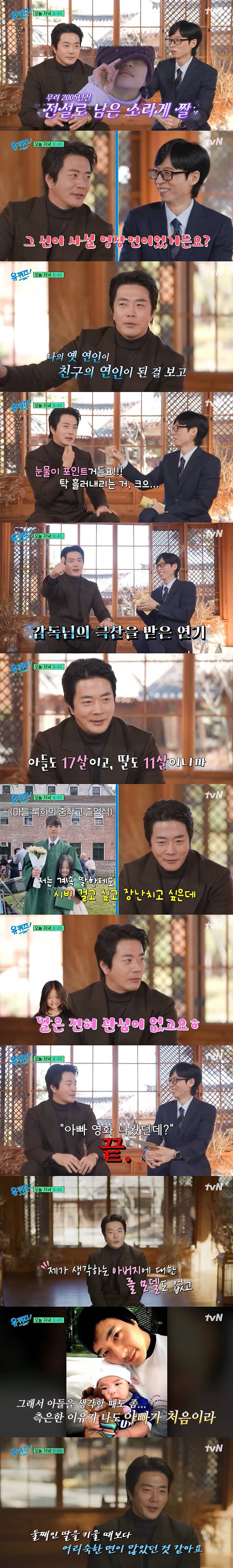 7일 tvN '유퀴즈온더블럭' 측은 "전설의 소라게 짤 비하인드부터 처음 꺼내보는 아들을 향한 속마음까지!"라면서 권상우 편을 선공개 했다.