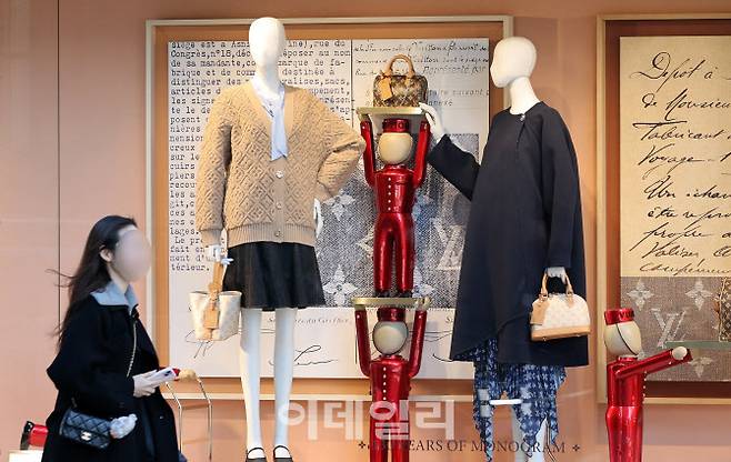 원자재·운영비 상승과 환율 등의 영향으로 명품 브랜드들이 새해가 시작되면서 잇따라 가격을 인상하고 있는 가운데 7일 서울의 한 백화점을 찾은 시민들이 명품관 앞을 지나고 있다.