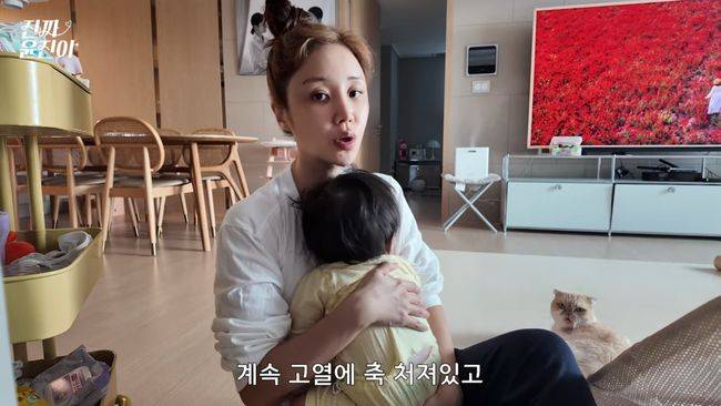 그러면서 "아기가 열이 날때 이런식으로 입혔다. 밑에는 좀 벗기고 위에는 가볍게. 그래도 제니가 이렇게 잘 버텨두고 어제 새벽에 열이 잡힌게 거의 하루도 안돼서 열이 잡혔다. 정말 다행이다. 우리 공주들한테 아기 열 어떻게 잡는지 제 방법을 참고하시라고 영상을 켜봤다. 아픈 아기 돌보기 너무 힘들겠지만 그래도 힘내시고 화이팅이다"라고 육아 동지들을 향한 응원을 전했다.