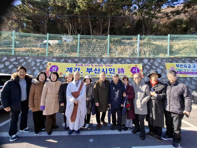 이번 시화전은 2024년 <부산시인>으로 등단한 새내기 시인들에게 시 창작 열기를 북돋우고자 기획한 특별 전시회로, 시화 제작비와 설치 비용 전액을 관음정사에서 부담해 의미를 더했다. 전시 기간은 3월 31일까지로 관음정사와 감천마을을 찾는 시민과 신도들은 산책길을 따라 걸으며 따뜻한 겨울 훈기를 느낄 수 있게 됐다.