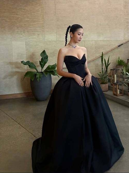 공개된 현장 사진 속 이재는 그야말로 우아함의 결정체였다. 과감한 절개 라인이 돋보이는 풍성한 볼륨의 블랙 튜브톱 드레스를 선택한 그는 군살 하나 없는 직각 어깨와 매끄러운 쇄골 라인을 가감 없이 드러내며 시선을 사로잡았다.