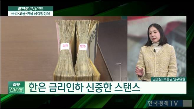 김명실 iM증권 연구위원은 7일 한국경제TV에 출연해 "작년 한국은행의 통화정책 발목을 잡았던 건 부동산이었고, 하반기부터는 환율이 추가 부담 요인이 됐다"며 "이 흐름이 바뀌지 않는다면 올해도 금리 인하는 쉽지 않은 환경"이라고 진단했다.