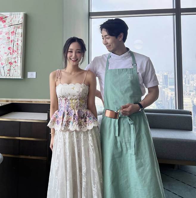 공개된 사진 속 이주영은 화려한 자수가 돋보이는 드레스를 입고 손종원 셰프가 이끄는 레스토랑을 방문한 모습이다.