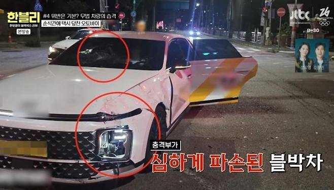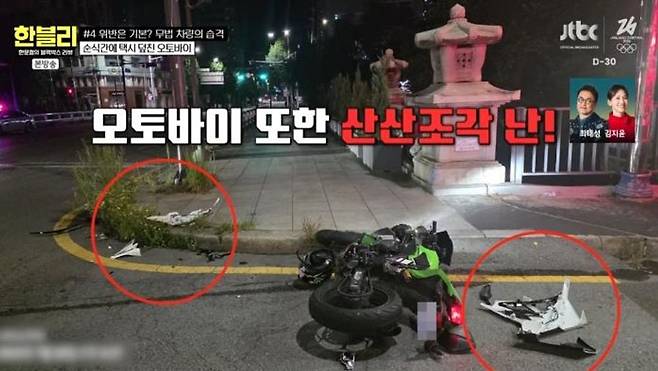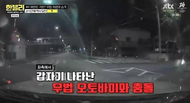 7일 방송된 JTBC '한문철의 블랙박스 리뷰'(이하 '한블리')에서는 '위반은 기본? 무법 차량의 습격'이라는 주제로 순식간에 택시를 덮친 오토바이의 영상이 공개됐다.