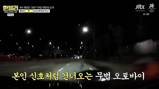 7일 방송된 JTBC '한문철의 블랙박스 리뷰'(이하 '한블리')에서는 '위반은 기본? 무법 차량의 습격'이라는 주제로 순식간에 택시를 덮친 오토바이의 영상이 공개됐다.