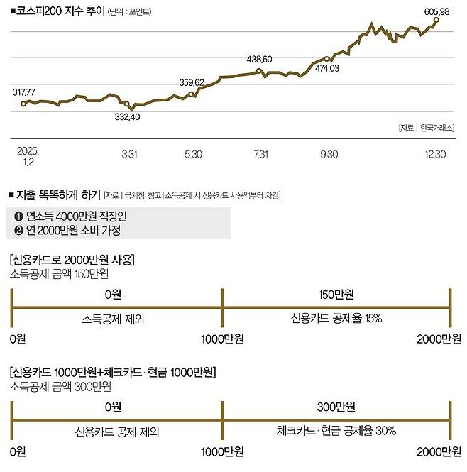ETF 상품이라고 해서 수익률이 낮은 것도 아니다. 한국거래소에 따르면 코스피200 지수는 2025년 1월 2일 317.82에서 12월 30일 605.98로 90.67% 상승했다. 관련 상품에 투자했다면 두배에 달하는 수익을 올릴 수 있었다는 의미다.