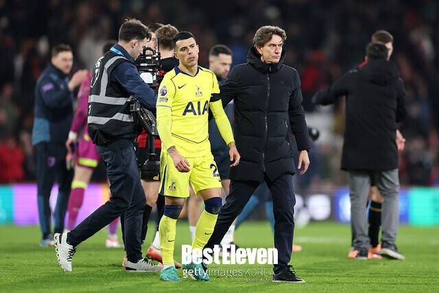 프랭크 감독이 이끄는 토트넘은 6일 새벽(한국 시간) 바이털리티 스타디움에서 열린 2025-2026 잉글랜드 프리미어리그 21라운드 본머스전에서 2-3으로 패했다. 이 패배로 토트넘은 승점 27점에 머물며 순위가 14위로 내려앉았다.