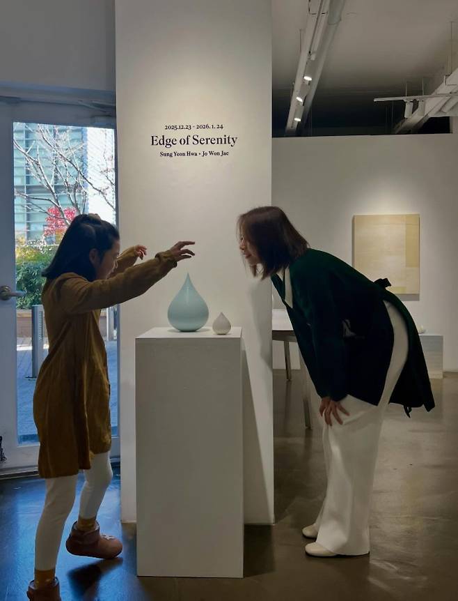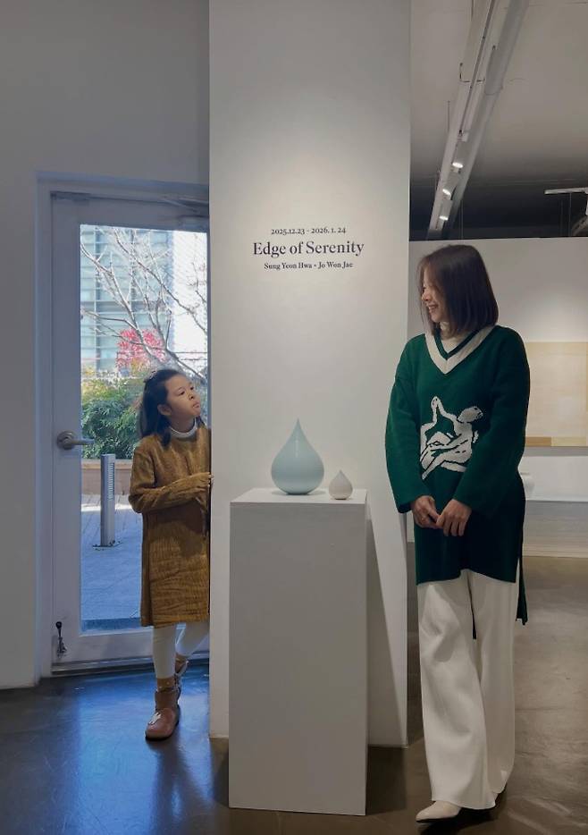 사진 속 조윤희는 딸과 나란히 전시회를 관람하며 고요하고 여유로운 시간을 보내는 모습이다.