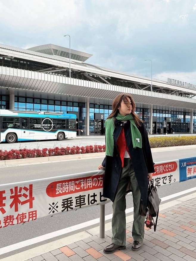 공개된 사진 속 강소라는 일본 후쿠오카 공항과 인근 거리를 배경으로 여유로운 여행을 즐기는 모습이다.