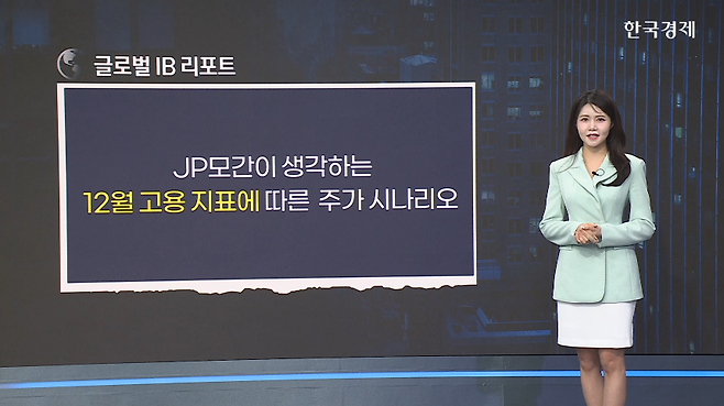 [서울=한국경제TV] 박지원 아나운서 = 이번 주 금요일 발표 예정인 12월 고용 지표가 뉴욕 증시의 향방을 가를 분수령이 될 전망입니다. JP모건은 최근 발간한 '2026년 글로벌 주식 시장 전망' 보고서에서 이번 고용 지표에 따른 구체적인 주가 시나리오를 제시하며 투자자들의 이목을 집중시켰습니다.