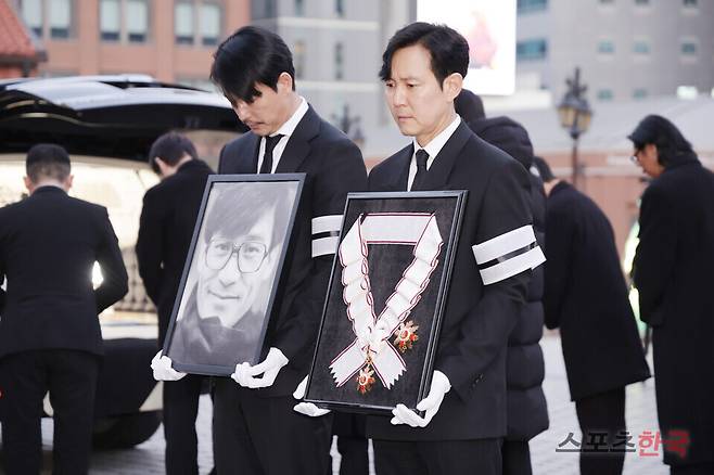 이날 영결식 이후 장지 이동하는 길에는 정우성이 영정 사진을 들고, 이정재가 훈장을 봉헌한다.