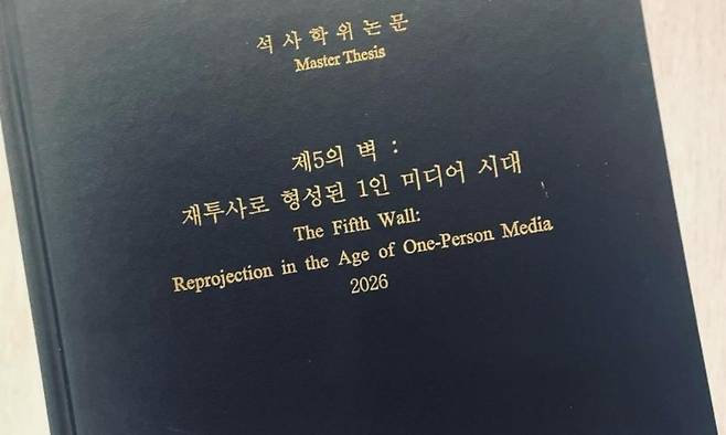 또 그의 석사 학위 논문도 눈길을 사로잡았는데 해당 논문 제목은 '제5의 벽:재투사로 형성된 1인 미디어 시대'라고 적혀있었다. 지난해 10월 졸업 사진 촬영장 사진을 게시하며 조기 졸업을 목표로 한 그는 노력 끝에 논문 통과를 이뤄냈다. 특히 그는 "다음은 박사(?!) 필승!"이라는 말도 덧붙여 이목이 집중됐다.