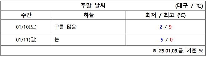 1월 2주 차 대구·경북 주말 ‘날씨 체크’