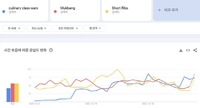 특히 이번 시즌은 단순한 시청을 넘어 실질적인 메뉴 탐색과 한국 식문화 콘텐트 소비로 이어지는 파격적인 파급력을 보였다. 2주 차 에피소드 공개 직후인 12월 24일에는 ‘갈비(Short Ribs)’ 키워드 검색량이 구글 트렌드 지수 기준 만점인 100을 기록하며 폭발적인 반응을 이끌어냈다.