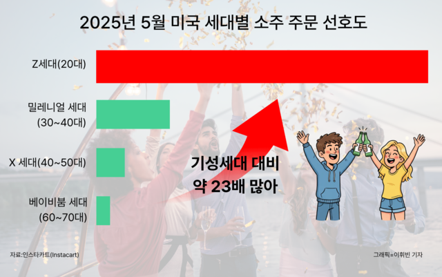 특히 세대 간 소비 격차가 뚜렷하다. Z세대의 소주 주문량은 부모 세대인 베이비붐 세대(60~70대)보다 23배(2277%)나 많았다. 밀레니얼 세대(30~40대)보다는 3.5배(345%), X세대(40~50대)보다는 10배(1044%) 더 많이 주문한 것으로 나타났다. 이는 소주가 미국 기성세대에게는 낯선 술이지만 젊은 층에게는 새로운 트렌드로 받아들여지고 있음을 시사한다.