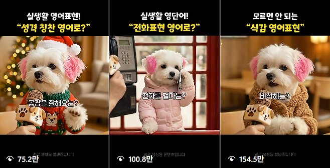이 콘텐츠는 일상생활에서 바로 활용할 수 있는 실무 위주의 전화 영어 표현을 핵심만 골라 짧은 영상으로 전달한다. 시청자들은 귀여운 ‘뽀삐’의 일상을 따라가며 자연스럽게 핵심 문장을 익힐 수 있어 학부모부터 직장인까지 전 연령층에서 고른 인기를 얻고 있다.