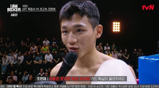 이날 8강에선 'UDT' 육준서와 '초고속' 조현재가 맞붙게 됐다. 조현재는 육준서를 향해 "엘리트 복싱의 벽이 얼마나 높은지 알려드리겠다. 육준서 선수가 난타전을 즐겨 하는데, 오늘은 맞기만 할 거니까 가드 확실히 올려라"라고 경고했다.