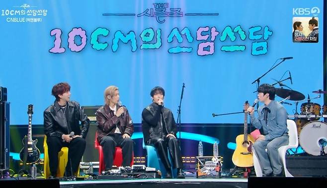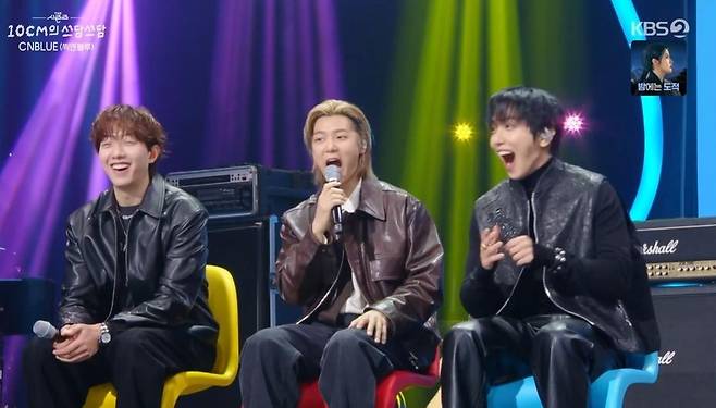여기에 십센치는 "저희가 한때 1위 대결을 했었다"라며 "그때 꼭 사과하고 싶었다"고 말해 이목을 집중시켰다. 그러면서 십센치는 "2016년 십센치의 '봄이 좋냐'와 씨엔블루의 '이렇게 예뻤나'가 붙었다. 당시 씨엔블루가 '이렇게 예뻤나'로 모든 방송에서 1위를 했다. 저랑 붙은 방송사 빼고"라고 기선을 제압했다.