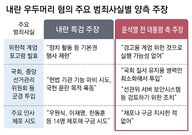 반면 사형을 구형해야 한다는 주장을 펼친 특검 인사들은 윤 전 대통령이 계엄 해제 이후에도 대통령 경호처 직원을 동원해 수사기관의 체포영장 집행을 방해하는 등 반성의 기미를 보이지 않는 점을 감안해야 한다고 강조했다. 전 전 대통령이 1996년 12·12군사쿠데타와 5·18민주화운동 관련 내란 수괴 혐의로 기소됐을 당시엔 내란목적 살인 혐의도 적용됐기 때문에 두 사건을 동일선상에 놓고 비교해선 안 된다는 의견도 있었다.