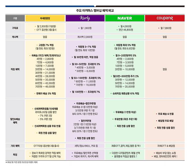 기존 구독료 2900원도 컬리(1900원) 다음으로 저렴하다. 네이버는 월 4900원(연간 4만6800원), 쿠팡은 7890원이다. 특히, 가격이 가장 높은 쿠팡과 비교하면 약 3분의 1 수준이다.