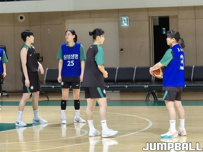 이상범 감독의 지휘 아래 훈련이 진행된 가운데 눈길을 끄는 것이 있었다. 몇몇 선수가 삼성생명 조끼를 착용하고 있었던 것. 삼성생명의 팀 컬러인 파랑색 바탕에 삼성생명 구단명, 선수 이름과 등번호까지 적혀 있었다. 유니폼과 다소 차이가 있었지만 한눈에 봐도 삼성생명 조끼라는 걸 알 수 있었다.