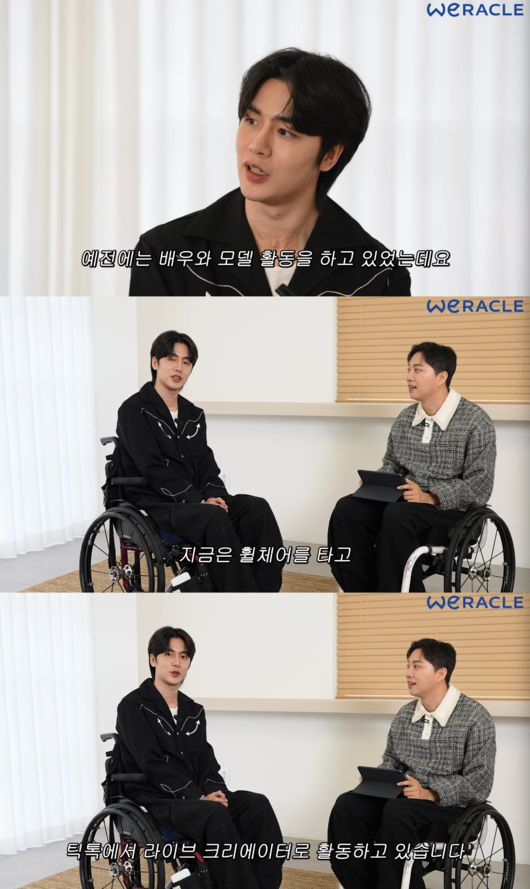 그는 "틱톡에서 라이브 크리에이터로 활동하고 있는 오승환이라고 한다. 예전에는 배우와 모델 활동을 하고 있었는데, 지금은 휠체어를 타고 틱톡에서 라이브 크리에이터로 활동하고 있다"고 설명했다.