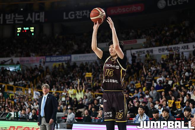 1쿼터 막판 18-11로 달아날 때 한 방, 3쿼터 중반 다시 두 자리 점수 차이인 54-42로 벌리는 한 방, 3쿼터 막판 소노로 넘어갔던 흐름을 LG로 되돌리는 한 방을 성공했다.