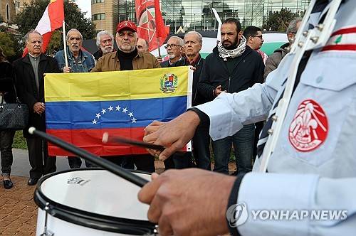 epa12640408 An activist carries a Venezuelan flag during a protest in solidarity with Venezuela outside the United Nations Economic and Social Commission for Western Asia (UN-ESCWA) headquarters in Beirut, Lebanon, 10 January 2026. Protesters gathered to express support for Venezuela and denounce international policies affecting the country and to demand the release of the Venezuelan President Nicolas Maduro. Maduro and Flores are being held in the United States on drug trafficking and other charges. EPA/WAEL HAMZEH