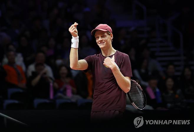 하트 퍼포먼스도 승부욕도 압도했다…알카라스, 신네르 꺾고 슈퍼매치 승리