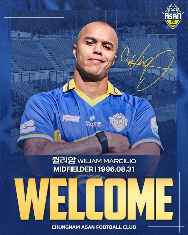 2부리그(K리그2) 충남아산프로축구단(구단주 오세현, 대표이사 이준일, 이하 충남아산FC)이 브라질 출신 공격형 미드필더 윌리암 마르실리오(Wiliam Marcilio)를 영입하며 중원의 무게감을 한층 강화했다.