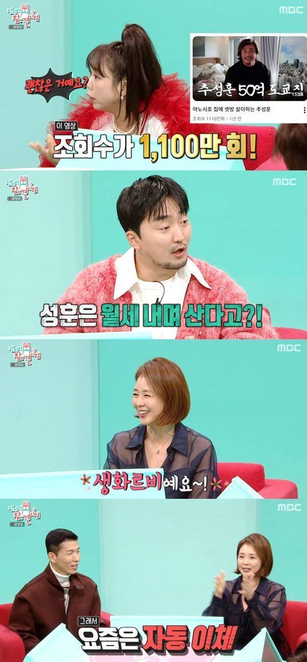 유병재가 "그 집이 야노시호 집인데, 추성훈은 월세를 내고 지낸다더라"고 하자 야노시호는 "아니다. 생활비다. 집은 제 것이다. 추성훈이 보탠 건 하나도 없다. 생활비 가끔 밀린 적 있다. 그래서 요즘은 자동이체"라고 해 웃음을 안겼다.