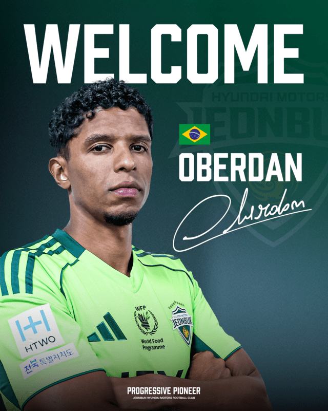 2025년 더블을 이뤄낸 1부리그 전북현대모터스FC(단장 이도현, 이하 전북현대)가 K리그 최고의 미드필더로 손꼽히는 오베르단(Oberdan Alionco de Lima/30세/MF)을 영입하며 중원을 강화했다.