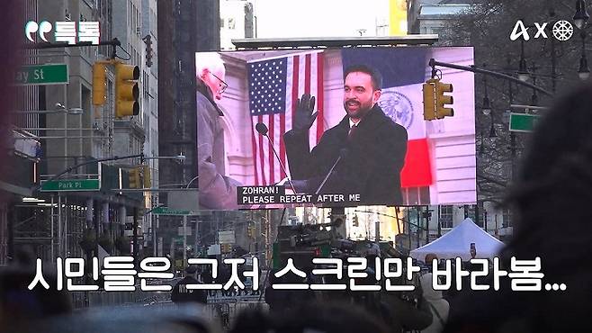 시민은 추위 속에서 대형 스크린으로만 맘다니를 봐야했던 거죠.