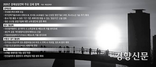 이재명 정부가 집권 2년 차를 맞아 지난 9일 발표한 ‘2026년 경제성장전략’의 핵심은 재정과 감세 정책을 총동원해 1%대 후반으로 떨어진 잠재성장률을 3% 가까이 끌어올리겠다는 것이다. 기업에 세제를 지원하는 등 성장에 ‘올인’하면서 양극화 완화를 위한 복지 정책은 후순위로 밀렸다는 비판이 나온다. 확장 재정을 뒷받침할 세수 확충 방안도 뚜렷하지 않다는 문제제기도 뒤따른다.