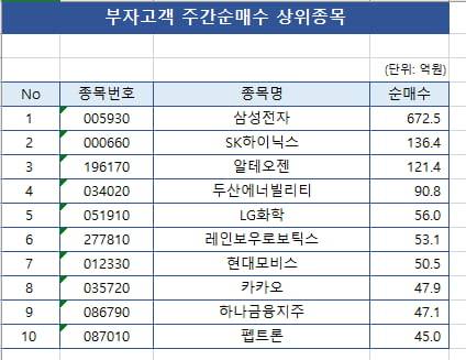 고액자산가들이 지난주 삼성전자와 SK하이닉스 등 대형 반도체주를 대거 순매수한 것으로 나타났다.