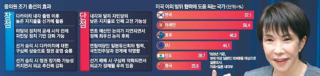조기 총선에서 대중 강경 입장을 견지하는 다카이치 내각이 승리한다면 중국과의 대립 국면이 장기화될 가능성이 커진다. 한국으로서는 중국과 일본 양쪽에서 실리를 취할 수 있는 외교적 기회라는 분석도 나온다.