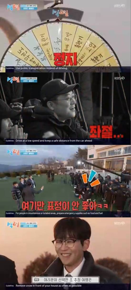 '1박 2일' 멤버들이 4%의 확률을 뚫고 조추첨 여행을 성사시켰다.