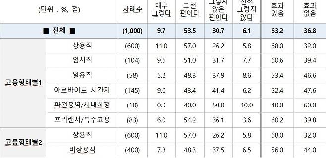 | ▲ 직장 내 괴롭힘 금지법의 피해 예방/피해자 보호 효과성 |