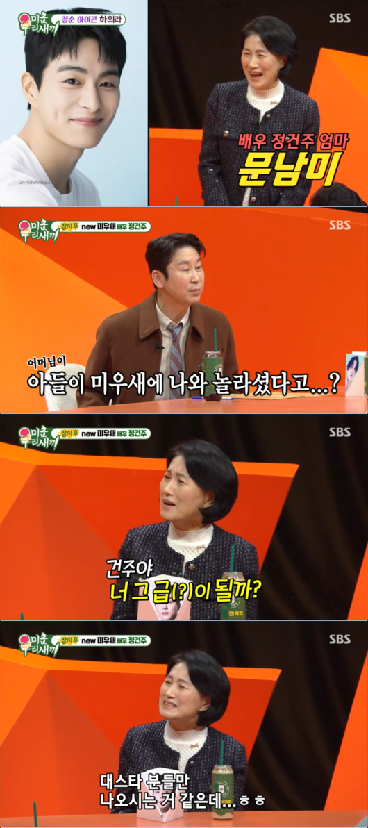 [OSEN=박근희 기자] '미운 우리 새끼’에서는 떠오르는 대세 배우 정건주가 새로운 멤버로 합류한 가운데, 아들을 향한 어머니의 거침없는 돌직구가 웃음을 자아냈다.