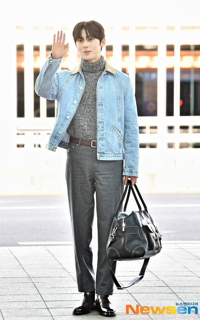 1월 12일 오전 배우 황민현이 해외 일정 참석을 위해 인천공항 제2여객터미널을 통해 출국하고 있다.