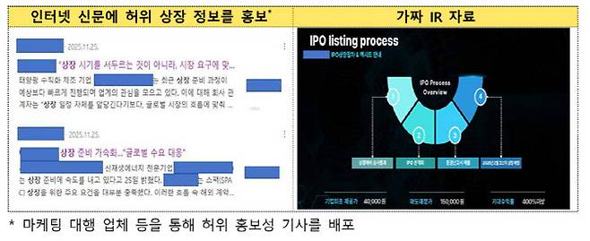 동시에 블로그나 인터넷 신문사 등에 조작된 IR(투자설명) 자료와 허위 상장 정보를 대량 게재하면서 투자자들을 현혹한다. 마케팅 대행 업체 등을 통해 허위 홍보성 기사를 배포하기도 한다.