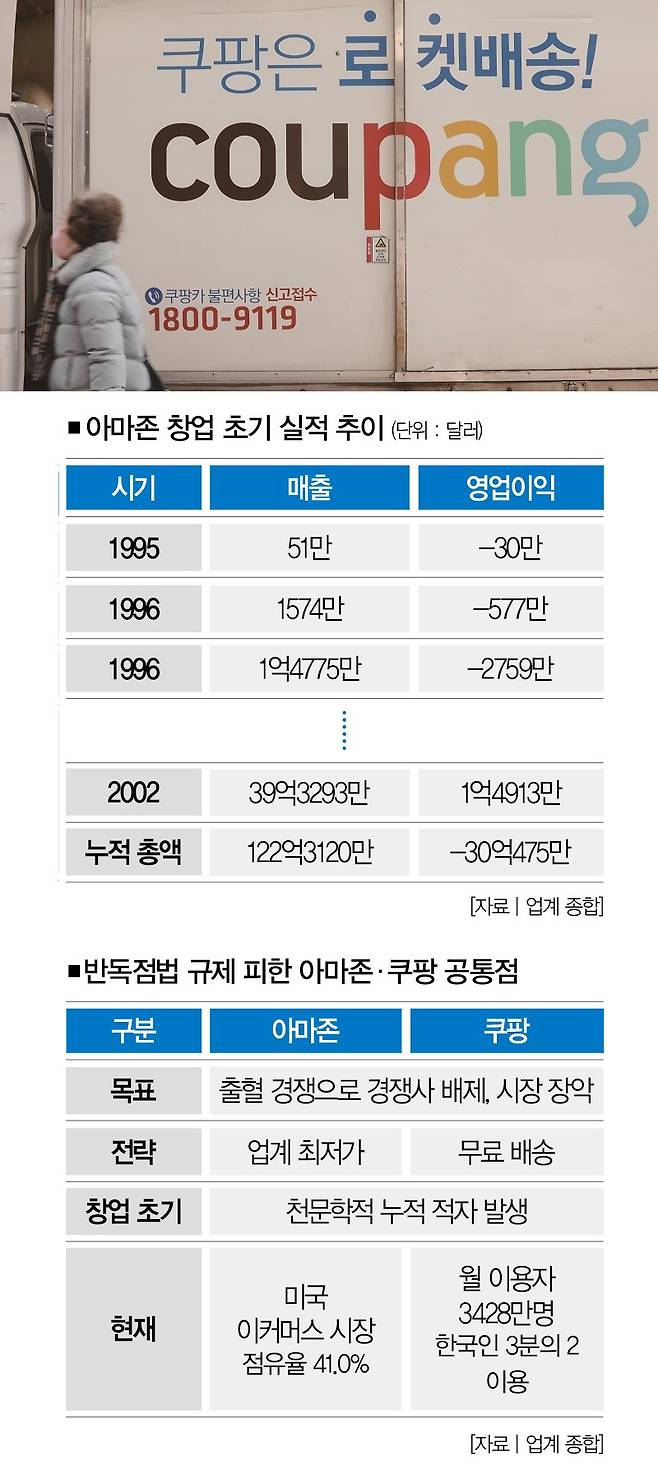무리한 해석은 아닙니다. 쿠팡은 창업 초기부터 공공연하게 '한국의 아마존'을 표방하며 아마존을 철저히 벤치마킹해왔습니다. 천문학적 규모의 돈을 투자해 물류 인프라를 구축했고, 이를 통해 얻은 '빠른 무료 배송'을 무기로 경쟁사들을 압도해 나갔죠. 누적 적자가 수조원이 넘어도 아랑곳하지 않았습니다. 오히려 '계획된 적자'라고 일축했습니다. 아마존도 그랬으니까요.